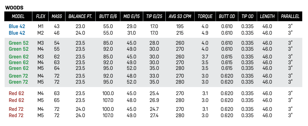 Green: Maximizes speed and feel with a responsive butt section, combined with a stable tip section to