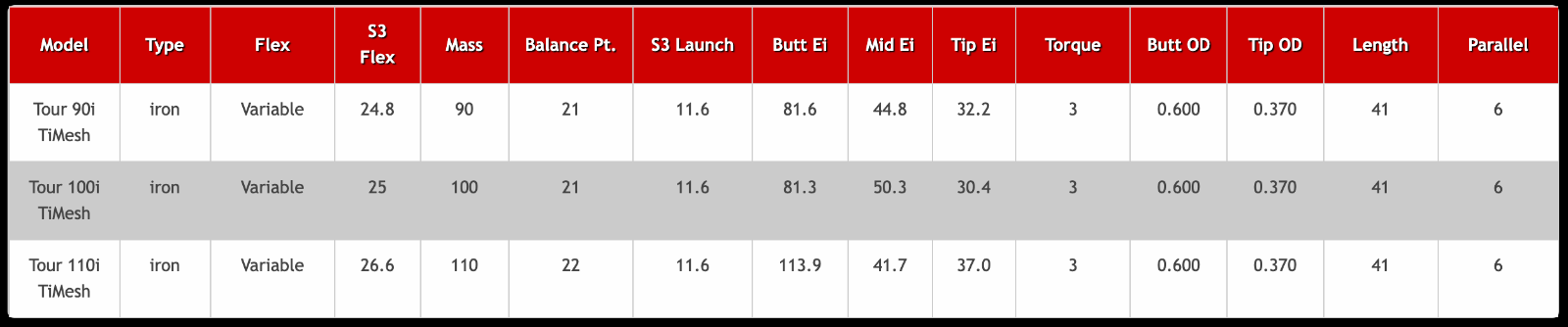 Available in 90g, 100g & 110g that can be built to limitless options of flexes to perfectly match the needs of any golfer. iSeries Tour shafts offer stability in the butt section from a weave material that reduces ovaling more than any other graphite iron shaft.